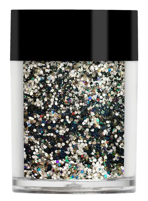 Lecenté Multi Glitz Glitter Black Gold Holographic is een zwarte/goude regenboog glitter van Lecenté™. De Multi Glitz glitters hebben verschillende groottes glitters en gemengde kleuren in een potje zitten. Deze glitters zijn ontwikkeld voor de Rockchick die zich in ieder van ons verschuild. Elke Multi Glitz Glitter is ontwikkeld met minimaal drie kleuren en twee verschillende maten glitters.